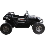 The MotoTec Baja UTV 4x4 24v Carbon Fiber (2.4ghz Remote Control) Ride-On Vehicle is the ultimate ride-on toy for adventurous kids. With its sleek carbon fiber design and powerful 4x4 capabilities, this ride-on vehicle is sure to turn heads in the neighborhood. Key Features: Double Doors for easy entry and exit 4 Wheel Drive with 4 powerful motors for maximum traction 2.4ghz Remote Control for parental supervision EVA Tires for a smooth and comfortable ride Leather Seat that is adjustable forward and back for a customized fit Bluetooth upgraded stereo for playing your favorite tunes Seat Belt for added safety Front & Rear Suspension for a smooth ride over rough terrain Working Lights for enhanced visibility Product Specifications: Brand: MotoTec EAN: Does not apply Motor(s): 4 x 12 Volt 35 Watt (4 Wheel Drive) Battery: 24 Volt (2 x 12 Volt) Rechargeable Battery Charger: Included Suspension: 4 Wheel Spring Stereo: Bluetooth, MP3 Port Sounds: Horn & Startup Driving: Manual Drive or Remote Control Doors Open: Yes Front & Rear Lights: Yes Leather Seat: 12 inches wide Tires: 15 inch EVA (foam/rubber) Ground Clearance: 9 inches Forward Speed: 6 MPH Reverse Speed: 2.5 MPH Run Time: 25-45 minutes Suggested Max Weight: 140 lbs Suggested Age: 3-6 years old Throttle Type: Foot Pedal Braking System: Releasing the throttle allows bike to stop quickly Material of Body: ABS Plastic Assembled Dimensions: 58x39x30 inches Product Weight: 80 lbs Box Dimensions: 59x33x18 inches Box Weight: 99 lbs Designed for children aged 3-6 years old, this ride-on vehicle can accommodate a maximum weight of 140 lbs. The foot pedal throttle allows for easy control, and the braking system ensures quick stops when needed. The ABS plastic body is durable and built to withstand the rough and tumble adventures of young drivers. With a run time of 25-45 minutes, your child will have plenty of time to explore and have fun. Whether they're cruising around the neighborhood or tackling off-road terrain, the MotoTec Baja UTV 4x4 24v Carbon Fiber (2.4ghz Remote Control) Ride-On Vehicle is sure to provide hours of excitement and adventure.