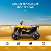The Musical Electric Ride-on Toy for Toddlers: The Perfect Four Wheeler for Kids is not just an ordinary toy car or truck. It is a thrilling adventure waiting to happen for your little ones. With its built-in music and exciting features, this electric ride-on toy will provide endless fun and entertainment for your child. Let their imagination run wild as they embark on exciting journeys and explore new horizons.Key Features:- Can handle multiple types of ground including grass, sand, pavement, brick, and wood- Wear-resistant tires for durability and longevity- Headlights add safety and enhance the realistic driving experience- AUX ports for connecting music devices and playing favorite tunes- Comfortable seat for hours of feel-good play- Speed range between 0.93-1.86 mph for a safe and enjoyable ride- Assembly required for easy setup and customizationSpecifications:- Material: Made from high-quality PP and metal for durability and safety- Overall Dimension: 32.75"L x 20.75"W x 21.75"H, providing a spacious and comfortable ride- Seat size: 14.25"W x 5.5"D x 15.25"H (off the ground), ensuring a cozy seating experience- Wheel Size: ?9.75", offering stability and smooth movement on various terrains- Charging Time: First charging: 12 hours, regular charging: 8-12 hours. Use Time: 45 mins (depending on intensity of use), allowing for extended playtime- Battery: Powered by a 12V, 4.5AH battery for reliable and long-lasting performance- Speed: Enjoy a speed range of 0.93-1.86 mph, perfect for young riders- Recommended Ages: Suitable for children aged 3-5 years old. Certification Age: 3-8 years old, ensuring safety and age-appropriate use- Weight capacity: Can support up to 55 lbs, accommodating most toddlers- Certification: Complies with ASTM F963 and CPSIA safety standards, ensuring a safe and worry-free playtime- Colormap: Vibrant yellow color adds a playful and eye-catching touch to the ride-on toy- Prop_Name: Nickel soluble compounds, Prop Type: Chemical, ensuring safety and compliance with regulationsLet your child's dreams of driving their own four-wheeler come true with the Musical Electric Ride-on Toy for Toddlers. This exciting and versatile toy car will inspire your little ones to explore the world around them and encourage outdoor play. With its durable construction, safety features, and comfortable seating, this ride-on toy is the perfect companion for your child's adventures.Note: Always monitor your child while they are riding for their safety.Specifications:- Theme: Not Available- Age Level: 3-4 Years- Character Family: Not Available- Model: X-370-235- Brand: Aosom- Type: Electric Ride-on Car- Item Dimensions: 32.75" x 20.75" x 21.75"- Material: PP, Metal- Weight Capacity: 55lb- Item Length: 32.75in- Item Width: 20.75in- Item Height: 21.75in- Colormap: Yellow- Prop_Name: Nickel soluble compounds- Prop Type: ChemicalLet your child's imagination soar and their adventures begin with the Musical Electric Ride-on Toy for Toddlers. Order now and watch as your little one experiences the joy and excitement of their very own four-wheeler ride-on toy.