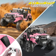 New Release: 2-Seater 24V Electric Truck for Kids with Bluetooth and 2x200W Motors The New Release: 2-Seater 24V Electric Truck for Kids with Bluetooth and 2x200W Motors is the perfect gift for adventurous boys and girls. This high-performance ride-on truck features a realistic appearance and double drive capabilities, allowing two kids to share the excitement together. With its parental remote control and powerful 24V battery, you can join your kids for playtime and have a great time together. Equipped with locking doors, foot pedals, wear-proof tires, and seat belts, this ride-on truck ensures the safety of your little ones. The patented electron-assisted steering wheel provides a real car experience, with wheel auto return for added comfort and safety. Your kids can also enjoy their favorite soundtracks by connecting to the built-in USB/Bluetooth/MP3 player, injecting fun into their driving experience. The New Release: 2-Seater 24V Electric Truck for Kids with Bluetooth and 2x200W Motors is designed with safety in mind. It is certified by ASTM & CPSIA, featuring soft start and soft braking functions, electron-assisted steering, and an auto-reset overheat protector. The parent remote control priority allows parents to control the directions their child goes in, providing an extra layer of protection. With its antiskid and durable wheels, this ride-on truck offers a smooth and comfortable driving experience for your child. The easy operate system, including a steering wheel, multimedia system, easy drive button, and foot gear, makes it easy for kids to drive it by themselves. The safety lock design ensures that kids are protected even when driving at high speeds. Key Features: Realistic appearance and high-performance double drive Parental remote control with 3 speeds (Max 4.9mph) Powerful 24V battery with up to 2 hours of runtime Locking doors, foot pedals, wear-proof tires, and seat belts Patented electron-assisted steering wheel for a real car experience USB/Bluetooth/MP3 player for connecting favorite soundtracks One-button soft-starting technology and switch forward and reverse Spring suspension system for a smoother driving experience Antiskid and durable wheels for comfortable and happy driving Safety lock design for an extra layer of protection Specifications: Color: Pink Recommended Age: 3-8 years Material: PP and ABS plastic, metal Battery Type: 24V 9AH Motor Type: 200W*2 Suspension: Full-Metal Suspension Seat Size: 18 inches Wheels Size: 14 inches Maximum User Weight: 130 lbs Safe Speed: 8-4.9 mph Charging Time: 8-12 hours Run Time: 100-120 minutes Music Function: AUX & USB port / Bluetooth / MP3 / Built-in music Overall Size: 48.5 inches (L) x 34.7 inches (W) x 31.5 inches (H) The New Release: 2-Seater 24V Electric Truck for Kids with Bluetooth and 2x200W Motors is the ideal gift for your children's birthday or holiday. Let them experience the thrill of driving their own truck and create unforgettable memories of adventure and fun.