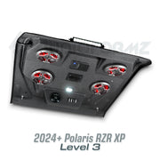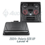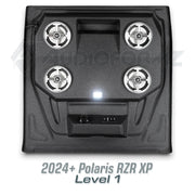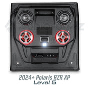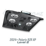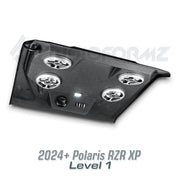 Introducing the latest innovation from AudioFormz: a roof top stereo system exclusively designed for the 2024 and newer Polaris RZR XP. Crafted with pride in Texas, our hand-laid fiberglass construction makes this stereo top one of the lightest, loudest, and most durable on the market. True to our commitment to customization, you can tailor your RZR XP stereo top from mild to wild, choosing from various levels to suit your style and audio preferences.