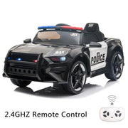 Police Electric Ride On Car for Kids with Remote Control - 12V Battery Powered in Black and White