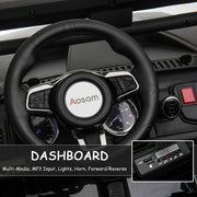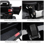 The Police Truck RC Ride-On Car for Kids with Remote Control, LED Lights, and MP3 Player - Black Add a new addition to your kids' garage with this dynamic ride-on vehicle from Aosom. The Police Truck RC Ride-On Car for Kids with Remote Control, LED Lights, and MP3 Player - Black is the perfect toy car for your little ones. It features both in-car and remote-control steering, allowing kids to have a complete driving experience. With its powerful 12V twin motor, this remote control ride on car provides a realistic driving experience just like the real deal. The working headlights and taillights, along with the wing mirrors, add to the authenticity of this police truck. The steering wheel, foot pedal, and forward and reverse gears make it easy for kids to navigate their way around. Plus, the MP3 input allows them to play their favorite tunes, making the driving experience even more enjoyable. With 2 wide seats and safety belts, kids can ride with their best friend, sparking imaginative play as they patrol the streets in this realistic police vehicle. Key Features: Powerful 12V twin motor Working headlights and taillights Wing mirrors Steering wheel Foot pedal Forward and reverse gears MP3 input 2 wide seats with safety belts Product Specifications: Brand: UIRIO Color: Black Type: Electric Police Truck Material: PP, Metal Age Level: 3-4 Years, 4-7 Overall Dimensions: 53.25" L x 33.75" W x 33.5" H Seat Size: 19.75" W x 8" D x 12.25" H Speed: 1.8-3 mph Weight Capacity: 110 lbs. Battery: 12V 7AH x 1 Motor: 55W x 2 Charger: 12V 1000Ma Recommended Ages: 37-96 months Certifications: ASTM F963 CPSIA Net Weight: 61.5 lbs. Get ready for an adventure with the Police Truck RC Ride-On Car for Kids with Remote Control, LED Lights, and MP3 Player - Black. Order yours today and let your little ones experience the thrill of driving their very own police truck!