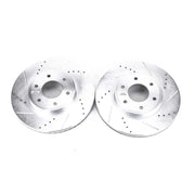 Power Stop drilled and slotted rotors provide a bolt-on upgrade for improved brake cooling and performance. Precision cross-drilled for maximum cooling and maximum performance during extreme conditions; rounded slots sweep away gasses, dust, and moisture to keep a clean friction contact patch on the rotor surface. Silver zinc dichromate plating resists rust and corrosion. With a direct OE fit, there are no special modifications needed.
