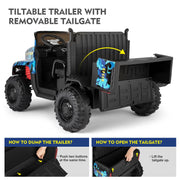 Powerful 24V 2-Seater Kids Ride On Dump Truck Tractor with Camo Design and 3 Speed Options, Includes Remote Control