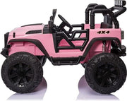 The Premium 24V Kids Electric Jeep with Remote Control and 3-Speed Options - 400W Motor and LED Lights Included! is the perfect ride-on toy for adventurous kids. With its lifelike driving experience, powerful motors, and spacious design, this electric truck car will provide hours of fun and excitement. Let your child explore the world of driving while staying safe and entertained. Key Features: Lifelike Driving Experience: The one-button-soft-starting technology, light-sensing electronic power steering, all-metal suspension, real foot pedal acceleration, light control, grid windshield for off-road style, and rearview mirror offer a realistic and child-appropriate driving experience. Powerful 24V 200W Driving Motors: Equipped with an efficient and stable 24V rechargeable battery, this ride-on truck can provide a long playtime. The 2PCS 200W powerful driving motors and 14" large-sized wheels ensure smooth driving on various terrains. 2-Seater Design: The extended two seats and spacious cockpit allow two kids aged 3-8 years to drive together comfortably. The safety belt provides extra protection, and the strong all-metal suspension system can bear a maximum load of 130 lbs. Two Driving Modes: The soft-start button, anti-skid pedal, high speed, and low-speed options make it easy for children to drive. The photosensitive electronic auxiliary steering wheel helps save energy when turning. Parents can use the 2.4Ghz wireless remote control to override the child's control for added safety. Multiple Functions for Fun: The ride-on vehicle comes with built-in music, MP3, USB port, and AUX port, providing a great number of music and stories. The high-bright LED headlights and searchlights add to the excitement, especially when driving at night. Security Configuration: Equipped with bright headlights and taillights, a parent remote control, comfortable seatbelts, lockable car doors, high chassis design, and all-metal shock absorbers, this ride-on truck ensures the safety of your child. Made of high-quality non-toxic PP material, it conforms to ASTM F963 & CPSIA Children Product Certification. Product Specifications: Battery: 24V 9AH Motor: 2x200W Suitable Age: 37-95 months Loading Capacity: 35kg Product Size: 123x88x80cm (48.4x34.6x31.5inch) Speed: 3-7 km/h Charge/Use Time: Charge 8-12h, Use 1-2h Charger: 24V Remote Control: AAA 1.5V Max-Loading Capacity: 35KG (77LBS) Suitable Age: 37~95 Months (Note: Children aged 12-42 months can sit with two people, and children aged 43-96 months can only sit with one person.) Additional Specifications: Brand: Unbranded Year: 2023 Custom Bundle: No Theme: Cars Recommended Age Range: 3-11 Age Level: 3-4 Years, 4-7, 8-11 Years Modified Item: No Character Family: Kids