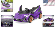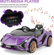 Stylish Purple Lamborghini Ride-On Car for Kids Rev up your child’s playtime with an exhilarating blend of luxury design and kid-friendly safety in our eye-catching Purple Lamborghini ride-on car. Designed to ignite excitement, inspire imaginative adventures, and deliver peace of mind for parents, this licensed mini Lamborghini promises hours of fun cruising across driveways, sidewalks, and family gatherings. Let your little driver experience the thrill of the open road in the comfort of your own yard! Licensed Lamborghini Excellence Every detail on this ride-on car mirrors the true spirit of a Lamborghini, from the gleaming automotive-grade paint finish to the precise body lines. As an officially licensed model, this purple mini-supercar delivers an authentic look that stands out under the sun or at playdates. Officially Licensed by Lamborghini – Experience the prestige of the Italian marque at a child-friendly scale. Automotive Spray Paint Finish – Vibrant purple coating resists scratches and shines brightly mile after mile. State-of-the-Art Design Details – Aerodynamic curves, sculpted side panels, and signature front grille capture eyes and imaginations. Two-Mode Driving Fun Whether you want to let your youngster steer their own adventure or maintain full control, this ride-on car adapts effortlessly. Parent Remote Control Mode – Take the wheel from afar with a responsive remote, offering you ultimate command for added safety. Child Independent Mode – Once your little one feels confident, switch to pedal and steering wheel operation so they can drive under their own power. Soft-Start Technology & Spring Suspension Safety is at the forefront of every joyride. Gradual acceleration and cushioned bumps let your child ride smoothly over driveways and gentle inclines. Slow-Start Acceleration – Eliminates jarring jerks when starting, ensuring a calm takeoff every time. Spring Shock Absorbers – Each wheel features suspension springs that soften uneven surfaces for a plush ride. Adjustable Safety Belt – Quick-release harness that grows with your child and keeps them snug during turns. Luxury-Inspired Features From scissor-style doors to hidden transport wheels, this purple Lamborghini ride-on car is packed with upscale touches that thrill both drivers and onlookers. Scissor Doors with Pneumatic Levers – Push the lever to watch the doors gracefully swing up for a dramatic entrance. Real LED Headlights and Taillights – Light up the path ahead and signal stops with realistic head- and tail-lamp glow. Discreet Rear Transport Wheels – Tilt the car onto its hidden rollers and roll it inside for easy storage. Built-In Multimedia Entertainment Keep the fun rolling with sounds, music, and stories. Your child can jam to favorite tracks or learn through engaging audio content. Multi-Media Player with MP3, USB & TF Ports – Plug in a USB drive or memory card to loop playlists of songs and tales. Bluetooth & AUX Connectivity – Wirelessly stream from your smartphone or tablet for endless custom soundtracks. Dashboard Speakers – Crisp, clear audio right at your child’s fingertips, encouraging sing-alongs and educational listening. Safety & Quality Assured We know your child’s safety is non-negotiable. That’s why every purple Lamborghini ride-on car meets or exceeds strict U.S. safety requirements. CPSIA & ASTM Certified – Built with non-toxic, BPA-free materials that pass rigorous toy safety testing. No Sharp Edges or Small Parts – Expertly engineered components to prevent pinches or choking hazards. DOE & CEC Energy Compliance – Eco-friendly design with energy-efficient operation for responsible play. Specifications Recommended Age Range: 3–5 Years Maximum Weight Capacity: 66 pounds Battery: 12V Rechargeable Battery with Charger Included Top Speed: Up to 3.7 mph in Baby Driving Mode, 2.5 mph in Remote Control Mode Dimensions: 48" Length × 26" Width × 20" Height Seat Size: 10" × 8" Spacious Seat to Accommodate Growing Riders Why Parents and Kids Love It You want your child to enjoy safe, imaginative play that promotes confidence and coordination. With this purple Lamborghini ride-on car, you’re gifting them a world of adventure: Confidence Boost – Mastering the steering wheel and pedals helps develop motor skills and self-assurance. Family Bonding – Enjoy quality time guiding your child in remote control mode, creating memories and sharing laughter. Endless Imaginative Play – Transform your backyard into a race track, city streets, or safari adventure at a moment’s notice. Stand-Out Style – The vibrant purple finish means they’ll turn heads wherever they go, making every ride feel like a red-carpet event. Your Child’s Next Big Adventure Starts Here This purple Lamborghini ride-on car is more than just a toy—it’s an invitation to dream big, explore freely, and feel the thrill of driving in a safe, controlled way. You can watch your little one light up as they grip the steering wheel, press the pedal, and hear the roar of the built-in sounds. Whether it’s a gift for birthdays, holidays, or simply a surprise “just because,” this ride-on car offers endless excitement and value. Invite your child to step into the driver’s seat today. Order now and unleash their imagination with this luxurious, safe, and supremely fun purple Lamborghini ride-on car. Every journey begins with a single drive—let the adventure begin!