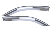 Enhance your truck or SUV with the exceptional Putco Element Chrome Window Deflectors. Crafted from a combination of durable and lightweight materials, these deflectors offer a sleek and eye-catching chrome finish that elevates the exterior aesthetics of your vehicle.Experience the perfect balance of functionality and style with these in-channel window deflectors. They enable the circulation of fresh air within your vehicle, ensuring a comfortable and refreshing atmosphere while effectively keeping rain, wind, and other weather elements at bay. Additionally, their innovative design minimizes wind noise, providing you with a serene driving experience.Versatility is a key feature of the Putco Element Chrome Window Deflectors. With their precisely engineered construction, they effortlessly accommodate a wide range of trucks, SUVs, and cars, ensuring a seamless fit on various vehicle models. Moreover, installing them is a breeze!, thanks to the convenient pre-applied 3M automotive tape that allows for a quick and hassle-free installation process.Upgrade with the best-in-class window deflectors with the Putco Element Chrome Window Visors and enjoy the perfect combination of enhanced aesthetics, improved ventilation, and reduced wind noise!