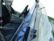 Folding windshield constructed from premium 0.177 in. thick, optically clear polycarbonate material that can be hinged up or down to increase or limit airflow in the cabin.