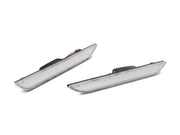 Upgrade the exterior styling of your 2015-2023 S550 Mustang with a pair of Axial Clear LED Side Marker Lights. These Side Marker Lights feature a razor sharp LED strip that replaces the unsightly hot spot of the factory lights. These Axial Side Marker Lights not only look great, but they are also much brighter than the weak factory incandescent lights for increased visibility day or night. Raxiom manufactures their Rear Side Marker Lights with injected molded ABS plastic housings for durability, and clear lenses for exotic good looks. These Side Marker employee high output, red, LED strip lighting for super bright illumination. Raxiom ensures that their Side Marker Light housings are weather sealed to prevent dirt and moisture from harming the state of the art electronics found inside. Raxiom designed their LED Side Marker Lights to be a direct plug and play upgrade for your Mustang's original factory lights. There is absolutely no cutting, splicing or resistors required. Just pop out the old factory side markers and disconnect the wiring harness. Plug the harness into the back of your new LED Side Markers and snap them in place of the old ones. It's that simple!