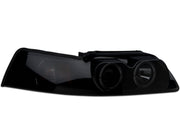 Give your 1999-2004 Mustang a new aggressive look with a set of Raxiom Smoked LED Halo Projector Headlights. These Smoked LED Halo Projectors have an intimidating design that blends smoothly into the lines of the New Edge Mustangs. The projector lenses light up the road ahead with a bright focused beam of light that not only looks great, but improves your night visibility. The LED Halo and accent lights give an exotic flair to your mustang that sets it apart from the rest of the herd. Equipped with H1 and H7 bulbs for high/low beams this pair of Mustang Headlights are DOT (Department of Transportation) approved for legal street use under compliance # QR1200197.
