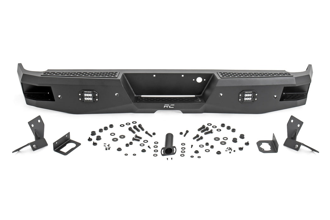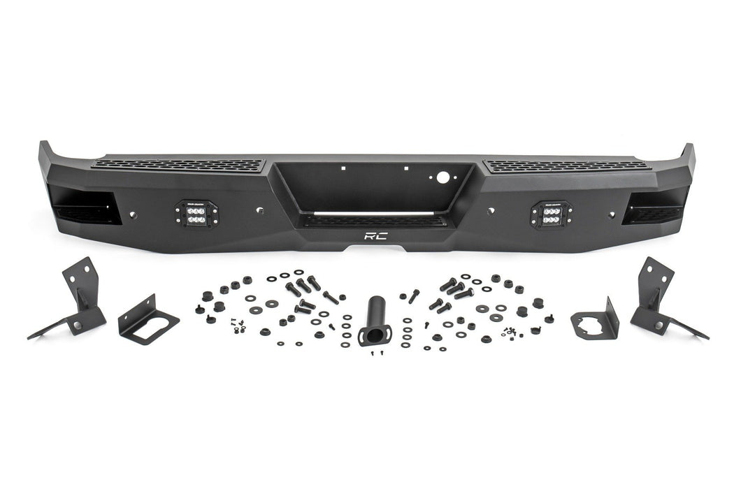 Give the rear of your GM 1500an aggressive, new appearance with Rough CountryΓÇÖs Rear LED Bumper. This easy-to-install upgrade gives your truck an improved look and better functionality. Each bumper features two Rough Country Black-Series 2in LED Flush Mount Cubes for rear illumination, and two integrated steps for easy access to the bed. Rough CountryΓÇÖs Rear LED Bumper is made of a durable, all-steel construction thatΓÇÖs ready to handle whatever you dish out. Each bumper also includes sensor relocators to allow you to retain the vehicleΓÇÖs anti-collision system. Unlike some aftermarket bumpers for this model, Rough CountryΓÇÖs LED Rear Bumper allows you to retain the factory receiver hitch for towing. Complete the look with Rough CountryΓÇÖs Front LED Bumper for a total transformation of your truck. Includes a 3-year Warranty!