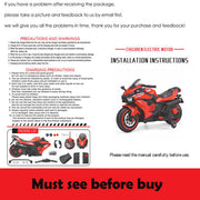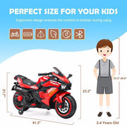 Red 12V Electric Motorbike for Kids with Training Wheels - Ride-On Motorcycle