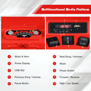 The Red Electric Kids Ride On ATV with Music and LED Lights - 12V 4-Wheeler Quad Our fantastic and functional kids ride-on ATV is the best gift for your lovely children! It comes with realistic ATV details that your child will surely love: a cool appearance, bright LED lights, music effects, and a forward/backward function. Children can easily operate this ride-on ATV with several buttons and a foot pedal. Made of premium materials and passing ASTM certification, our ride-on ATV ensures your child's safety with its stable four-wheel design that prevents it from falling down. This electric toy will bring excitement to your children's playtime, taking them on a thrilling adventure! Key Features: Realistic and cool ATV appearance with horn sound to attract kids' attention Slow start function for gradual acceleration and reliable braking USB slot and Bluetooth connectivity to connect portable devices Easy to ride and control with a few buttons and a foot pedal Color: Red Material: PP + Iron Overall Size: 42 x 25.5 x 29 (L x W x H) Net Weight: 36.4 lbs Weight Capacity: 77 lbs Speed: 2.8-5 km/h Battery: 12V 7AH Charger: 12V Charge Time: 8-12 hours Running Time: 1-2 hours Recommended Age: 3-7 years old Package includes: 1 x Kids Ride On ATV, 1 x Adapter, 1 x User Manual