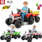 Remote Control Electric Tractor Car with Trailer for Kids - 12V Ride-On Toy
