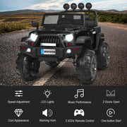 The Remote Controlled 12V Kids Ride On Truck with Double Magnetic Door is the ultimate ride-on toy for adventurous kids aged 3-7 years old. This powerful car features two control modes to provide a thrilling and safe experience. In battery operate mode, kids can drive the truck themselves using the foot pedal and steering wheel. For added parental control, the car can also be operated through the remote control with 3 changeable speeds. This allows parents to enjoy the joy of playing with their kids while ensuring their safety. This ride-on truck is packed with various attractive features that will keep kids entertained for hours. It is designed with an AUX input, USB port, and TF card slot, allowing kids to connect portable devices and enjoy their favorite music while driving. The built-in music and education mode will even help kids learn while having fun, improving their musical literacy and hearing skills. Safety is a top priority with this ride-on truck. It is equipped with a slow start function to avoid the risk of sudden acceleration. The 4 wear-resistant wheels are made of superior PP material, ensuring they won't leak or burst. The spring suspension system and seat with multi-point safety belt offer a safer driving experience, giving parents peace of mind. The real driving experience is enhanced with exciting features such as a double door with a magnetic lock, a multi-media center, a shifter for forward and reverse, horn buttons, and shining LED lights. Kids can switch modes and adjust the volume by pressing the buttons on the dashboard, giving them an authentic driving experience. This ride-on truck is the perfect gift for kids who love adventure. With 2 powerful drive motors, it can reach speeds of 3-6 km/h, providing an exciting feeling for kids. The cool and stylish look of the truck makes it a standout gift for any occasion. Your child can race with friends and fully release their youthful energy. Specifications: Color: Black, Pink, Red, White Material: PP, Iron Overall dimensions: 49" x 31" x 32" (L x W x H) Net weight: 48 lbs Weight capacity: 66 lbs Speed: 3-6 km/h Charge time: 8-12 hours Battery: 12V 7 AH Recommended for ages: 3-7 years old Key Features: 2 powerful drive motors to reach 3-6 km/h speed PP material and metal frame ensure sturdiness and durability Equipped with AUX input, USB port, and TF card slot to connect external devices 2.4G remote control mode with 3 adjustable speeds and battery operation mode Slow start function for gradual acceleration and reliable braking Spacious seat with multi-point safety belt for sitting and playing Luxury appearance with bright LED lights and horn sound to attract kids 4 explosion-proof wheels with spring suspension for long-time use Forward and reverse shifter and steering wheel for easy operation Trunk to store toys, snacks, and more Retractable handle for easy movement and transport Doors with magnetic locks can be opened for added fun and convenience One-button start design for convenience Get ready for an exciting adventure with the Remote Controlled 12V Kids Ride On Truck with Double Magnetic Door. Order now and let your child's imagination run wild!