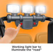 - Realistic Jeep Wrangler styling with a 7-bar grille and working light bar