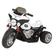 The Rev Up the Fun with Our 3-Wheel Electric Motorbike for Kids Ages 3 and Up! is the perfect ride-on toy for your little adventurer. Whether they want to explore the great outdoors or zoom around indoors, this motorcycle for kids is designed for both. With its lightweight and compact design, it's easy to transport around the yard or even take it to the park.This electric motorcycle for kids is packed with realistic features that will make your child feel like a real rider. It has both forward and reverse functions, so they can easily maneuver around obstacles. The working headlights not only add to the authenticity but also ensure visibility during playtime. The bright police ride-on car decals add a touch of excitement, while the sound effects make the experience even more thrilling. With a maximum speed of 1.75 miles per hour, you can rest assured that your child will travel at a safe speed.Riding this 3-wheel toddler motorcycle is a breeze for children aged 3 to 6. Simply charge the included 6V battery according to the instruction manual, then turn it on, press the pedal, and watch your child go! The smooth and simple ride will give them the confidence to explore their surroundings.Safety and durability are our top priorities. This kid's car is made from rugged high-quality plastics and carbon steel, ensuring it can withstand the adventures of your little one. With a weight capacity of up to 55lbs, it's suitable for both boys and girls. Plus, our ride-on toys are free of banned phthalates, providing a healthy and safe playtime experience. Not only will your child have fun, but they'll also get some exercise in the process.Here are the product details:- Materials: Plastic and Carbon Steel- Dimensions: (L) 31” x (W) 17” x (H) 21”- Specs: 6V Battery, 15W Motor, 4.5ah- Max Forward or Reverse Speed: 1.75 mph- Some Assembly Required- Color: White and Black- Skill level: BeginnerThis 3-wheel electric motorbike for kids is the ultimate toy for adventure-loving children. Let their imaginations run wild as they explore the world around them with this exciting ride-on toy. Order yours today and watch your child's face light up with joy!