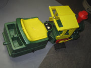 This vintage ride-on train is a true testament to childhood adventures and mechanical craftsmanship. Designed to ignite a child's imagination, this train is perfect for those who love tinkering, restoring, or simply relishing the nostalgia of old-school toys. The engine features a robust motor that runs smoothly when connected to a battery, showcasing its reliable power source. Please note that the battery is not included, so you’ll want to equip it with your own to get the full experience.