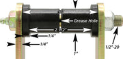 RockJocks greasable rear shackles for 1976-1986 Jeep CJ vehicles directly replace the stock shackles with our new, heavy duty units. Our shackles feature laser cut, 1/4 in. thick steel side plates, Energy Suspension fluted urethane bushings, grade 8 greasable bolts that feature zerk fittings on their heads for greasing of the bushings, and center bolt-in sleeves for added rigidity. Shackles are 4 1/4 in. tall from bolt center to bolt center, which is approximately 3/4 in. taller than stock). Finished in corrosion proof gold zinc plating and sold in pairs.