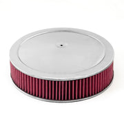 This 14 in. round chrome air cleaner assembly from Rugged Ridge fits most 4-barrel carburetors. Our dry panel design never needs oiling, which prevents your mass airflow sensor from being damaged by excess oil! Rugged Ridge performance high flow filters are made from a synthetic fabric and not cotton. Cotton filters are made porous and must be oiled to trap dirt and debris. But that oil reduces air flow through the filter and it can become easily clogged. No oil = No fuss, no mess and improved engine performance!