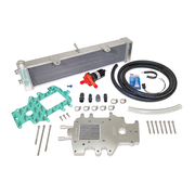 Our short stack intercooler system installs easily in a matter of hours and retains all of your stock PCV and EGR functionality. Upgrades with our new core include a new case design that fits better and uses full 3/4" barb inlet and outlet. Our updated system now uses our dual pass heat exchanger for more concise hose routing and packaging, as well as better efficiency.