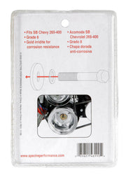Spectre's Harmonic Balancer Bolt Kit is designed to fit Chevrolet Small Block 265-400 V8 engines. This grade 8 bolt is 2-1/2 inches long, and features a plated finish for corrosion resistance. This kit also includes a security lock washer.