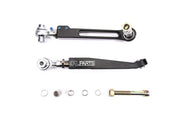ATS-V Front Lower Control Arms (FLCA) provide roll center, camber, and track width adjustment and allow for full articulation with the proper ball joint angle. The main arm is slotted to allow the use of pinch bolts, and our rotating clamps on SPL Parts' exclusive Double Adjuster lock down camber and track width settings. No more jam nuts!! Long gone are the days of fumbling with multiple wrenches to tighten jam nuts in place while trying to keep your bearings oriented correctly. Using our lower control arm, you can set up your suspension for whatever your needs are. If you have lowered your Camaro, you can use our roll center spacers to get your roll center back where it should be and have the car roll less and take full advantage of that lower center of gravity. If you are looking to show up at the car meet with the most camber, we can do that for you too, allowing up to approximately 4.3 of camber, depending on ride height. And finally, if you are turning laps out at the track, our quick adjustment double adjuster makes making minor camber adjustments a breeze, increasing your grip and reducing tire wear. Our Double Adjuster is machined from 4130 Chromoly, gun drilled to reduce weight, then electroless nickel plated for corrosion resistance. Blue Anodized Titanium hardware shaves even more unsprung weight from the arms without compromising strength. Stainless Steel spacers are provided to correct roll center for lowered vehicles