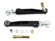 S550 Mustang Front Lower Control Arms (FLCA) provide roll center, camber, and track width adjustment for the S550 Ford Mustang, and allow for full articulation with the proper ball joint angle. The main arm is slotted to allow the use of pinch bolts, and our rotating clamps on SPL Parts' exclusive Double Adjuster lock down camber and track width settings. No more jam nuts!! Long gone are the days of fumbling with multiple wrenches to tighten jam nuts in place while trying to keep your bearings oriented correctly. Our Double Adjuster is machined from 4130 Chromoly, gun drilled to reduce weight, then electroless nickel plated for corrosion resistance. Blue Anodized Titanium hardware shaves even more unsprung weight from the arms without compromising strength. Stainless Steel spacers are provided to correct roll center for lowered vehicles