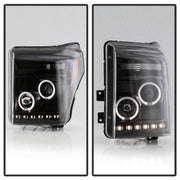 Spyder Ford Super Duty 11-16 Projector Headlights LED Halo DRL All Black PRO-YD-FS11-HL-BKV2