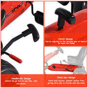The Stealth Outdoor Go Kart for Kids is the ultimate ride-on toy for adventure-seeking children. With its sleek design and pedal-powered functionality, this go kart provides endless hours of fun and excitement. Featuring a striking Black/Red color combination, this go kart is sure to turn heads as your child zooms around the neighborhood. The durable construction is made from high-quality PP and Iron materials, ensuring long-lasting performance and safety. Measuring at 39.4 inches in length, 23.2 inches in width, and 24.4 inches in height, this go kart is the perfect size for kids to comfortably ride. It can support a maximum weight of 66 lbs, making it suitable for children of various ages and sizes. Equipped with four sturdy wheels, this go kart offers stability and control, allowing your child to navigate different terrains with ease. Whether it's on pavement, grass, or gravel, this go kart can handle it all. The set includes 1 x Go Kart and 1 x User Manual, providing everything you need to get started. The user manual provides clear instructions on how to assemble and operate the go kart, ensuring a hassle-free experience. Key Features:- Sleek and stylish design- Pedal-powered functionality- Striking Black/Red color combination- Durable construction with PP and Iron materials- Suitable for children up to 66 lbs- Four sturdy wheels for stability and control- Suitable for various terrains- Set includes 1 x Go Kart and 1 x User ManualProduct Specifications:- Brand: Costway- Type: Car- Color: Black/Red- Material: PP, Iron- Size: 39.4" x 23.2" x 24.4" (L x W x H)- Number of Wheels: Four- Set Includes: 1 x Go Kart, 1 x User Manual- Weight: 66 lbsLet your child's imagination run wild as they embark on thrilling adventures with the Stealth Outdoor Go Kart for Kids. Get ready for endless fun and excitement with this pedal-powered ride-on toy.