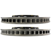 StopTech AeroRotor Replacement Kits ARK are designed to replace your vehicle's original factory rotors; while retaining the factory brake calipers. Although the ARK is the same diameter and thickness as the factory rotors; it offers improved cooling; braking; and handling. The directional; floating AeroRotors allow independent expansion of the rotor and hat without "coning;" thanks to elongated drive pin holes. ARK components include AeroRotor friction rings with patented internal vane design; pre-assembled to billet aluminum AeroHats with directional stand-offs that optimize cooling airflow. The patented AeroRotor vane design pushes up to 80 percent more air than factory rotors for better cooling and reduced fade on the track. The aircraft-grade aluminum hats and 2-piece AeroRotors are up to 8 pounds lighter than stock rotors; allowing faster acceleration and deceleration; and improved handling. StopTech AeroRotors are available slotted or cross-drilled. These slots or holes allow better dissipation of heat; friction material and debris; assuring that fresh pad material is in contact with the rotor every time the brakes are applied. An optional anti-corrosion; zinc finish is available for customers in cold climates; where salt and chemicals are used to melt snow and ice. The zinc coating also benefits customers who prefer no visible surface rust on the vanes and outer circumference of the rotors. StopTech AeroRotors are 100 percent made in the USA.