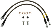 StopTech Stainless Steel Braided Brake Lines provide a quicker; firmer; more consistent pedal response by maintaining consistent brake pressure. Additionally; stainless steel lines provide precision brake modulation; especially during threshold braking. The improvement in pedal feel is more dramatic on older vehicles where the factory rubber line may have softened and swelled due to age. A variety of end fittings are available to meet application needs. All fittings are engineered for proper fit and durability. All necessary brackets and fasteners are included with each line kit.