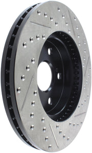 StopTech Drilled and Slotted Sport Rotors are 1-piece direct replacement brake discs for factory brake systems and stock calipers that look great behind your wheels – and offer significantly improved braking performance. The unique cross-drilling and slotting aids with heat and brake dust dispersal; prevents glazing of the pads; adds bite and improves wet and dry braking performance. Built to last; the black e-coating provides protection from corrosion and the high carbon metallurgy (in most applications) offers quieter operation; better crack resistance and increased performance.