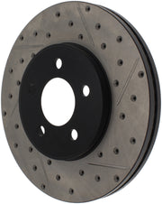 StopTech Drilled and Slotted Sport Rotors are 1-piece direct replacement brake discs for factory brake systems and stock calipers that look great behind your wheels – and offer significantly improved braking performance. The unique cross-drilling and slotting aids with heat and brake dust dispersal; prevents glazing of the pads; adds bite and improves wet and dry braking performance. Built to last; the black e-coating provides protection from corrosion and the high carbon metallurgy (in most applications) offers quieter operation; better crack resistance and increased performance.
