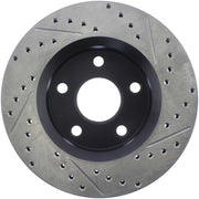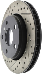 StopTech Drilled Sport Rotors are 1-piece direct replacement brake discs for factory brake systems and stock calipers that look great behind your wheels – and offer significantly improved braking performance. The unique cross-drilling aids with heat and brake dust dispersal; prevents glazing of the pads; adds bite and improves wet and dry braking performance. Built to last; the black e-coating provides protection from corrosion and the high carbon metallurgy (in most applications) offers quieter operation; better crack resistance and increased performance.