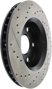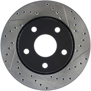 StopTech Drilled and Slotted Sport Rotors are 1-piece direct replacement brake discs for factory brake systems and stock calipers that look great behind your wheels – and offer significantly improved braking performance. The unique cross-drilling and slotting aids with heat and brake dust dispersal; prevents glazing of the pads; adds bite and improves wet and dry braking performance. Built to last; the black e-coating provides protection from corrosion and the high carbon metallurgy (in most applications) offers quieter operation; better crack resistance and increased performance.