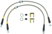 StopTech Stainless Steel Braided Brake Lines provide a quicker; firmer; more consistent pedal response by maintaining consistent brake pressure. Additionally; stainless steel lines provide precision brake modulation; especially during threshold braking. The improvement in pedal feel is more dramatic on older vehicles where the factory rubber line may have softened and swelled due to age. A variety of end fittings are available to meet application needs. All fittings are engineered for proper fit and durability. All necessary brackets and fasteners are included with each line kit.