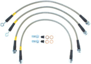 StopTech Stainless Steel Braided Brake Lines provide a quicker; firmer; more consistent pedal response by maintaining consistent brake pressure. Additionally; stainless steel lines provide precision brake modulation; especially during threshold braking. The improvement in pedal feel is more dramatic on older vehicles where the factory rubber line may have softened and swelled due to age. A variety of end fittings are available to meet application needs. All fittings are engineered for proper fit and durability. All necessary brackets and fasteners are included with each line kit.