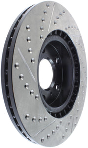 StopTech Drilled and Slotted Sport Rotors are 1-piece direct replacement brake discs for factory brake systems and stock calipers that look great behind your wheels – and offer significantly improved braking performance. The unique cross-drilling and slotting aids with heat and brake dust dispersal; prevents glazing of the pads; adds bite and improves wet and dry braking performance. Built to last; the black e-coating provides protection from corrosion and the high carbon metallurgy (in most applications) offers quieter operation; better crack resistance and increased performance.