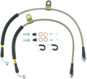 StopTech Stainless Steel Braided Brake Lines provide a quicker; firmer; more consistent pedal response by maintaining consistent brake pressure. Additionally; stainless steel lines provide precision brake modulation; especially during threshold braking. The improvement in pedal feel is more dramatic on older vehicles where the factory rubber line may have softened and swelled due to age. A variety of end fittings are available to meet application needs. All fittings are engineered for proper fit and durability. All necessary brackets and fasteners are included with each line kit.