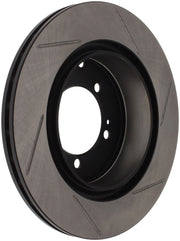 StopTech Slotted Sport Rotors are 1-piece direct replacement brake discs for factory brake systems and stock calipers that look great behind your wheels – and offer significantly improved braking performance. The unique slotting aids with heat and brake dust dispersal; prevents glazing of the pads; adds bite and improves wet and dry braking performance. Built to last; the black e-coating provides protection from corrosion and the high carbon metallurgy (in most applications) offers quieter operation; better crack resistance and increased performance.