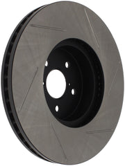 StopTech Slotted Sport Rotors are 1-piece direct replacement brake discs for factory brake systems and stock calipers that look great behind your wheels – and offer significantly improved braking performance. The unique slotting aids with heat and brake dust dispersal; prevents glazing of the pads; adds bite and improves wet and dry braking performance. Built to last; the black e-coating provides protection from corrosion and the high carbon metallurgy (in most applications) offers quieter operation; better crack resistance and increased performance.