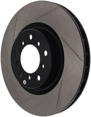 StopTech Slotted Sport Rotors are 1-piece direct replacement brake discs for factory brake systems and stock calipers that look great behind your wheels – and offer significantly improved braking performance. The unique slotting aids with heat and brake dust dispersal; prevents glazing of the pads; adds bite and improves wet and dry braking performance. Built to last; the black e-coating provides protection from corrosion and the high carbon metallurgy (in most applications) offers quieter operation; better crack resistance and increased performance.