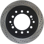 StopTech Drilled and Slotted Sport Rotors are 1-piece direct replacement brake discs for factory brake systems and stock calipers that look great behind your wheels – and offer significantly improved braking performance. The unique cross-drilling and slotting aids with heat and brake dust dispersal; prevents glazing of the pads; adds bite and improves wet and dry braking performance. Built to last; the black e-coating provides protection from corrosion and the high carbon metallurgy (in most applications) offers quieter operation; better crack resistance and increased performance.
