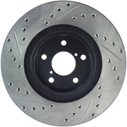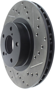 StopTech Drilled and Slotted Sport Rotors are 1-piece direct replacement brake discs for factory brake systems and stock calipers that look great behind your wheels – and offer significantly improved braking performance. The unique cross-drilling and slotting aids with heat and brake dust dispersal; prevents glazing of the pads; adds bite and improves wet and dry braking performance. Built to last; the black e-coating provides protection from corrosion and the high carbon metallurgy (in most applications) offers quieter operation; better crack resistance and increased performance.