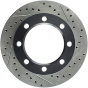 StopTech Drilled and Slotted Sport Rotors are 1-piece direct replacement brake discs for factory brake systems and stock calipers that look great behind your wheels – and offer significantly improved braking performance. The unique cross-drilling and slotting aids with heat and brake dust dispersal; prevents glazing of the pads; adds bite and improves wet and dry braking performance. Built to last; the black e-coating provides protection from corrosion and the high carbon metallurgy (in most applications) offers quieter operation; better crack resistance and increased performance.