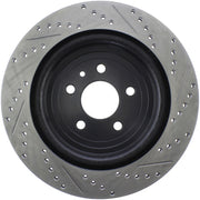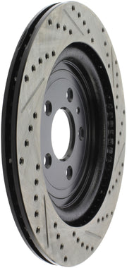 StopTech Drilled and Slotted Sport Rotors are 1-piece direct replacement brake discs for factory brake systems and stock calipers that look great behind your wheels – and offer significantly improved braking performance. The unique cross-drilling and slotting aids with heat and brake dust dispersal; prevents glazing of the pads; adds bite and improves wet and dry braking performance. Built to last; the black e-coating provides protection from corrosion and the high carbon metallurgy (in most applications) offers quieter operation; better crack resistance and increased performance.