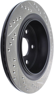 StopTech Drilled and Slotted Sport Rotors are 1-piece direct replacement brake discs for factory brake systems and stock calipers that look great behind your wheels – and offer significantly improved braking performance. The unique cross-drilling and slotting aids with heat and brake dust dispersal; prevents glazing of the pads; adds bite and improves wet and dry braking performance. Built to last; the black e-coating provides protection from corrosion and the high carbon metallurgy (in most applications) offers quieter operation; better crack resistance and increased performance.