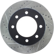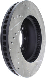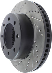 StopTech Drilled and Slotted Sport Rotors are 1-piece direct replacement brake discs for factory brake systems and stock calipers that look great behind your wheels – and offer significantly improved braking performance. The unique cross-drilling and slotting aids with heat and brake dust dispersal; prevents glazing of the pads; adds bite and improves wet and dry braking performance. Built to last; the black e-coating provides protection from corrosion and the high carbon metallurgy (in most applications) offers quieter operation; better crack resistance and increased performance.