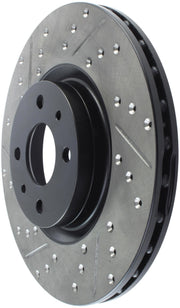 StopTech Drilled and Slotted Sport Rotors are 1-piece direct replacement brake discs for factory brake systems and stock calipers that look great behind your wheels – and offer significantly improved braking performance. The unique cross-drilling and slotting aids with heat and brake dust dispersal; prevents glazing of the pads; adds bite and improves wet and dry braking performance. Built to last; the black e-coating provides protection from corrosion and the high carbon metallurgy (in most applications) offers quieter operation; better crack resistance and increased performance.
